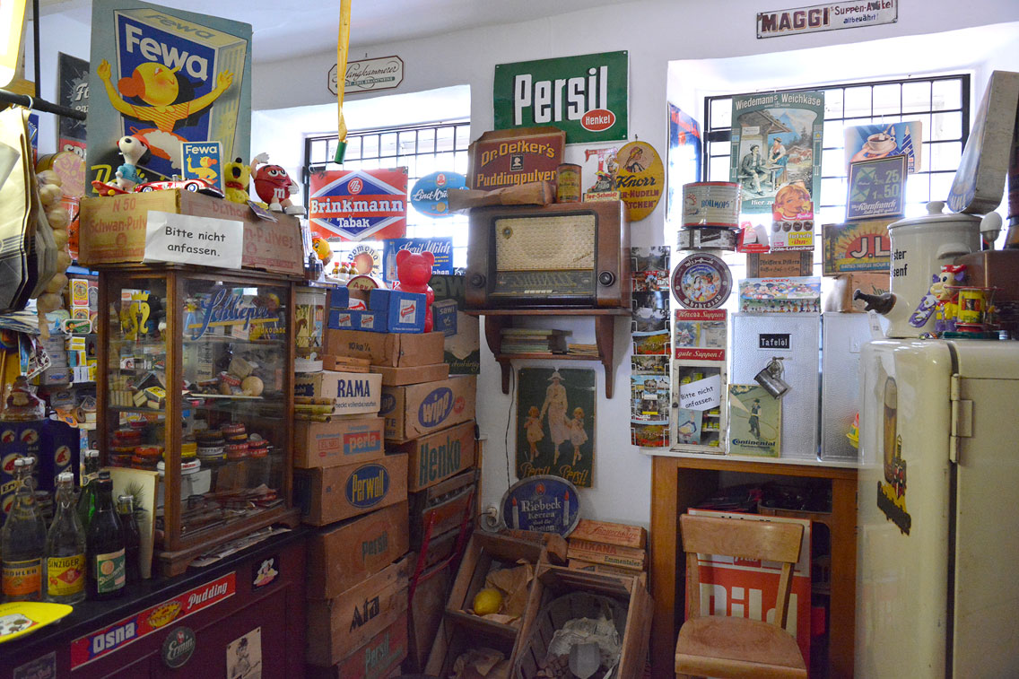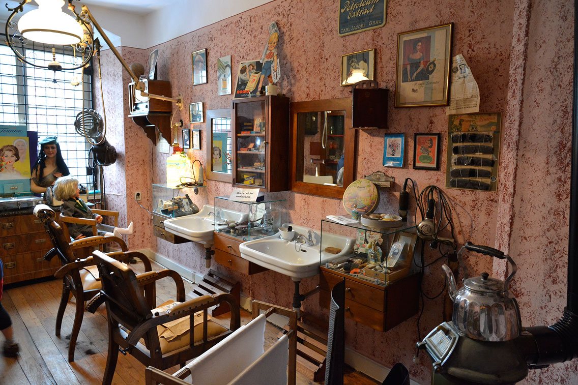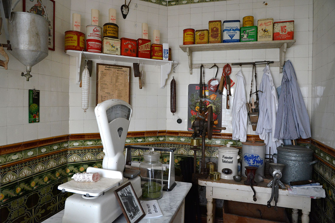 Hier kann man zum Beispiel einen Kolonialwaren-, einen Tabak-, einen Damenhut-, einen Schreibwaren-, einen Friseur- und einen Bäckereiladen sehen, welche allesamt mit viel Liebe zum Detail ausgestattet sind. Aber auch eine Schulklasse, eine Schusterwerkstatt, eine Sattlerei, eine Metzgerei und eine Polsterei finden sich in den Räumlichkeiten der alten Propstei. Die Besucher können die einzelnen Läden und Werkstätten betreten und jede Einzelheit in Ruhe betrachten.